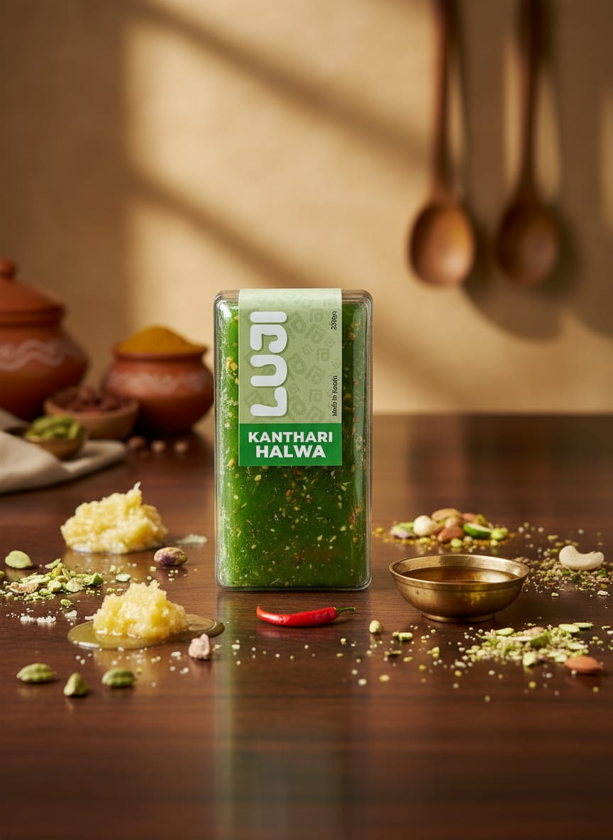 Crafted with the finest ingredients and infused with the bold flavor of kanthari chilli (green chilli), this unique halwa delivers a perfect balance of rich sweetness and gentle heat. Every bite is a taste adventure β soft, glossy, and bursting with Keralaβs signature spice magic.